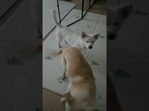 타견 너무 좋아하지만 산책시는 인사 너무 하고 싶어서 흥분도가 높지만 훈련중이고 잘하고 있습니다. 유치원에서는 타견과 잘지냈습니다. 가정에서도 타견(암컷)과 잘지내고 서열없이 잘지내는것 같아요~!